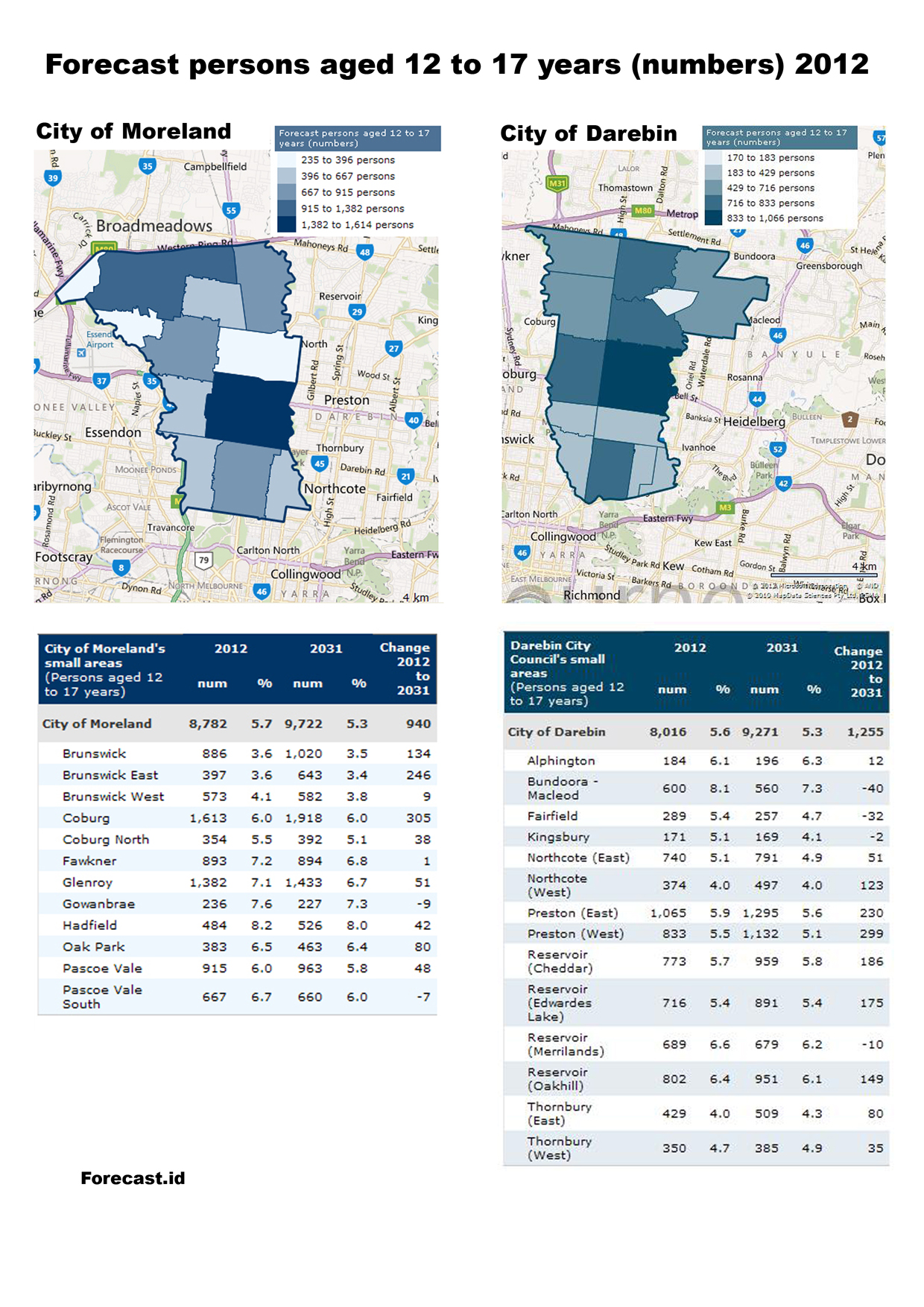 It shows the most secondary school aged persons in Darebin and Moreland are in Preston and Coburg –suburbs which do not have any Years 7-9 co-ed school provision.