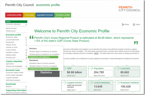 Importantly, with the addition of the imputed 2011 data to economy.id, Local Government Areas like Penrith can track their self-containment and self-sufficiency over time.