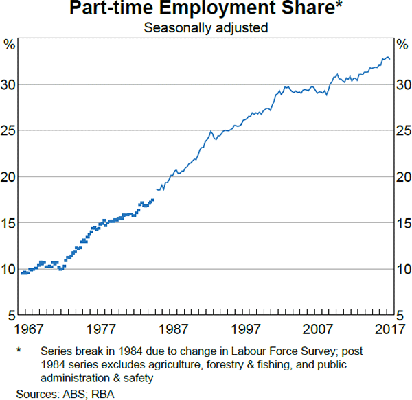 The following charts are from the RBA Bulletin report The Rising Share of Part-Time Employment, 2017